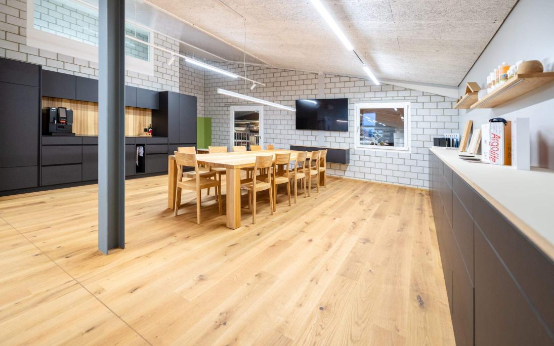 Energieeffiziente Lösungen sind für die Schreinerei und deren Eigentümer schon lange ein Thema. Früh wurde gemeinsam mit Anstössern in nächster Umgebung, einige aus dem engsten Familienkreis, eine Nahverbundlösung realisiert: Eine einzige Heizung versorgte die nähere Umgebung. Um diese und andere energetische Fragen habe sich immer Gabriel Frei gekümmert, weiss Tobias von seinem Onkel. «Er ist auch heute Bindeglied zwischen uns und der Regio Energie Solothurn.» Denn diese ist seit vielen Jahren Partner der Schreinerei und begleitet die Unternehmensleitung, wenn es um entsprechende Fragen geht – auch als in den letzten Monaten eine moderne Grundwasser-Wärmepumpe die alte Gasheizung abgelöst hat. Diese wird mit der bestehenden Holzschnitzelheizung kombiniert. Kaum hatte die dritte Generation den Betrieb übernommen, musste sie sich im Zuge des Angriffs Russlands auf die Ukraine wieder mit Energieversorgung und -kosten befassen. Schon länger hatten die Freis auf die Gelegenheit gewartet, die damals noch bestehende Gasheizung zu ersetzen. Nun war sie gekommen. «Wir haben diverse Möglichkeiten geprüft, und da das Contracting der bisherigen Versorgung auslief, kamen wir mit der Regio Energie Solothurn zusammen, um die Planung einer neuen Lösung anzugehen. Dabei hat uns diese in gewohnter Weise super beraten, gab uns Tipps und gleiste die neue Versorgungslösung auf.» Kurz vor Beginn der nun zu Ende gehenden Heizperiode konnte die neue Anlage in Betrieb genommen werden. Primäre Energiequelle ist das Grundwasser. Erst wenn diese nicht ausreicht, wird die Holzschnitzelheizung, in der auch Holzabfälle aus dem eigenen Betrieb verfeuert werden, zugeschaltet. Damit ist das Heizsystem etwa das einzige in der Schreinerei Gebr. Frei AG, bei dem nicht Holz im Zentrum steht.
