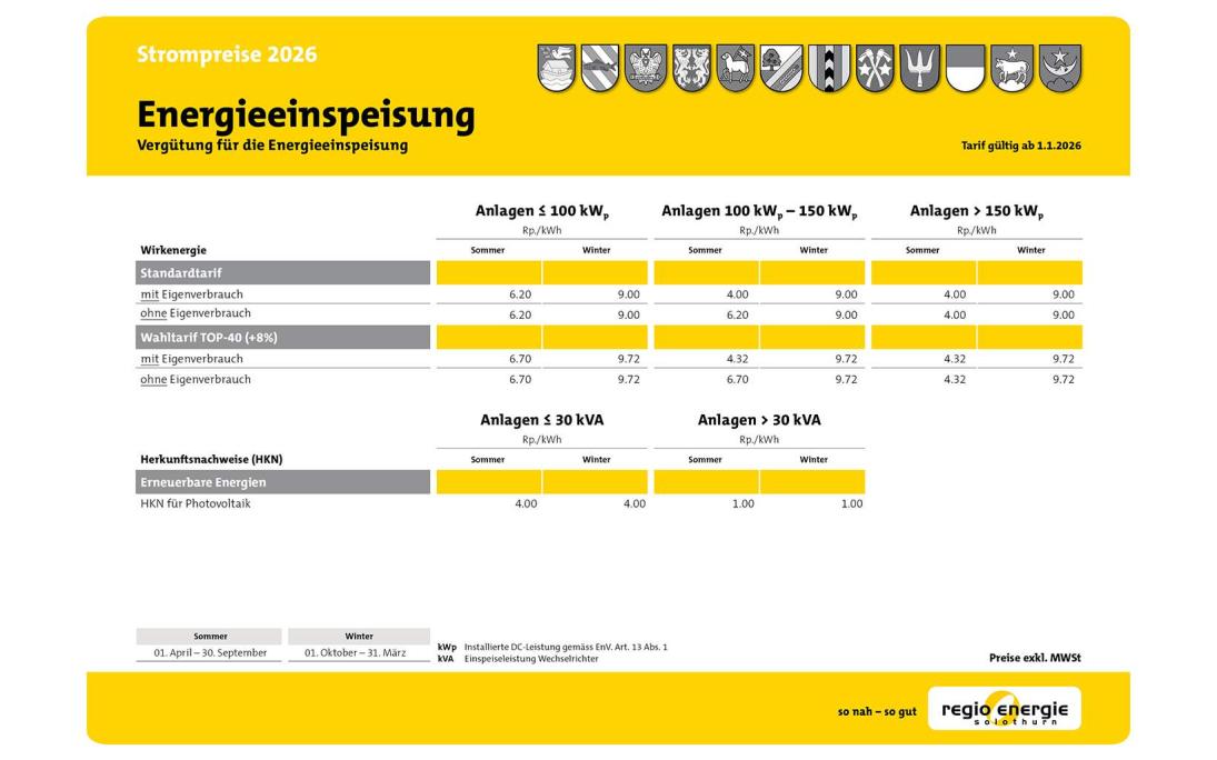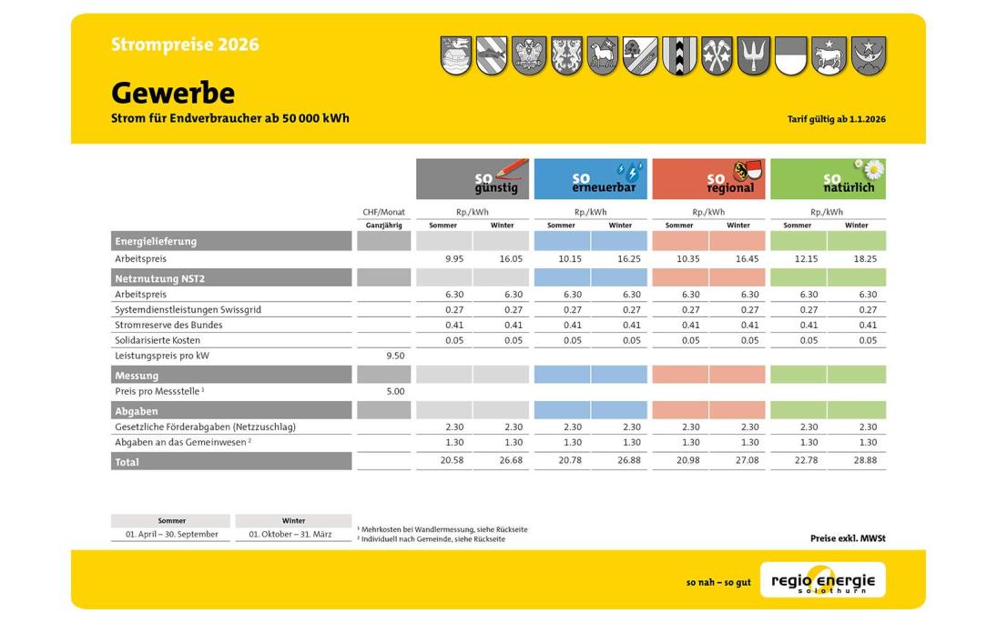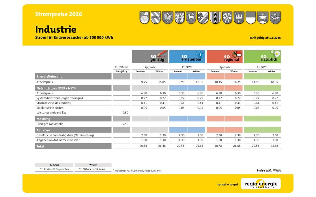 Strompreise Solothurn 2024/2025