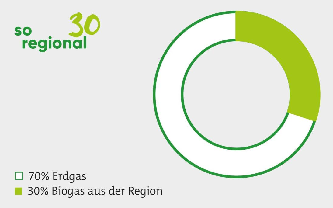 Biogas ist eine wertvolle, erneuerbare Energie, die in unserer Region aus Klärschlamm sowie Grüngut und Küchenabfällen gewonnen wird. Unsere vier Gasprodukte enthalten einen unterschiedlich hohen Anteil Biogas. Sie haben die Wahl und entscheiden, welches Produkt Sie beziehen möchten.