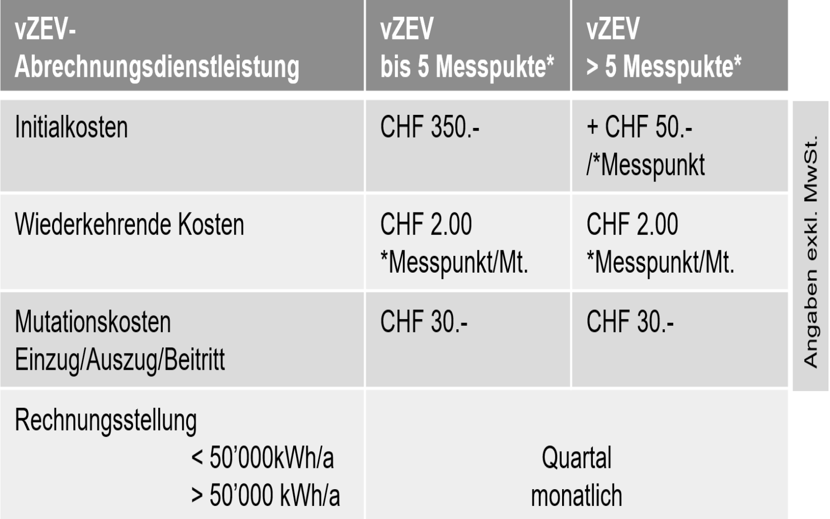 vZEV < 50'000 kWh Energiebezug im Jahr (Preisangaben exkl. MwSt.)